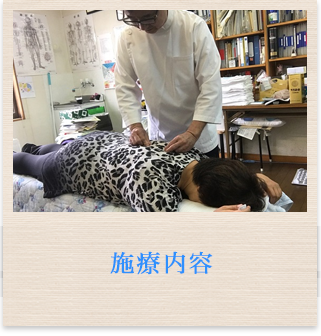 | 施術内容 | カイロプラクティック(脊椎矯正療法(整体)) 温熱刺激・光線・電気療法 オステオパシー、各種療法 |
