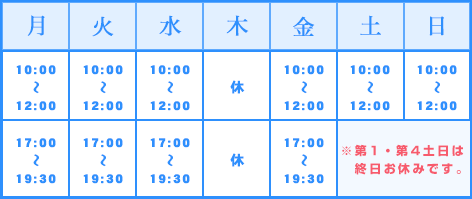 | 定休日 | 木曜日・第1、第4 土日曜日 |